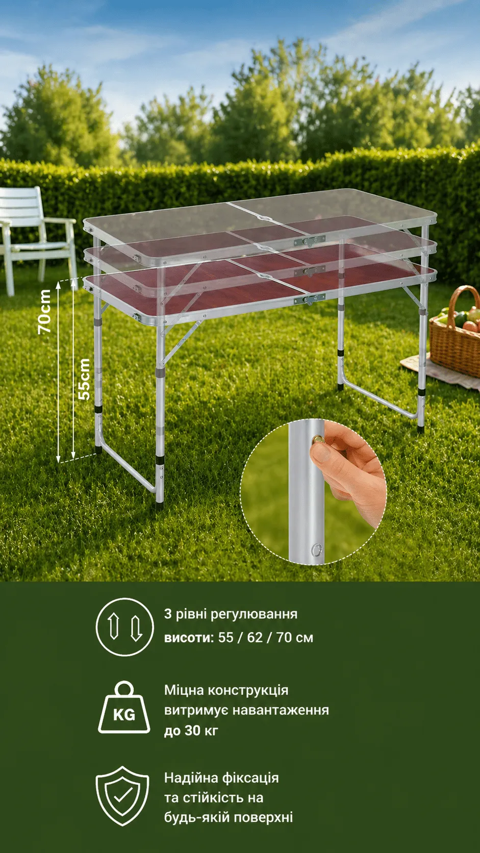 Стіл досить стійкий, а поверхня легко миється від соку чи жиру. За таку ціну — просто знахідка для сімейного відпочинку!»